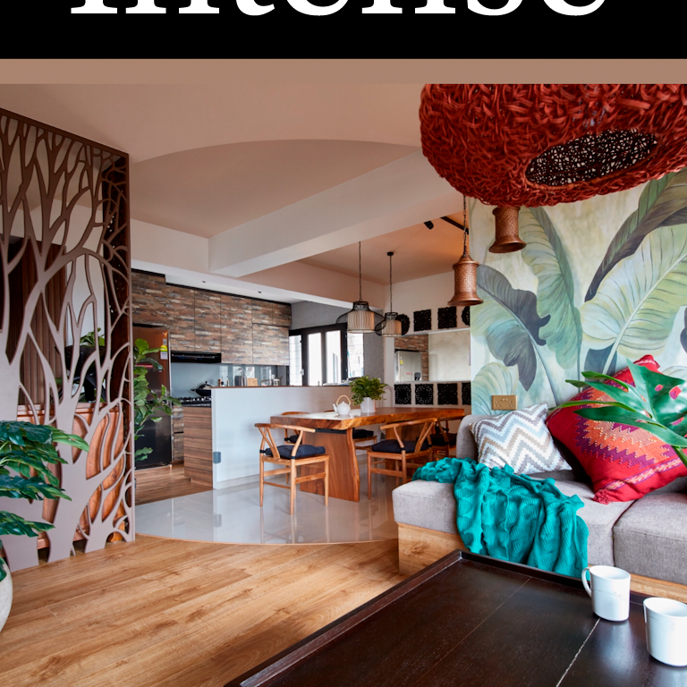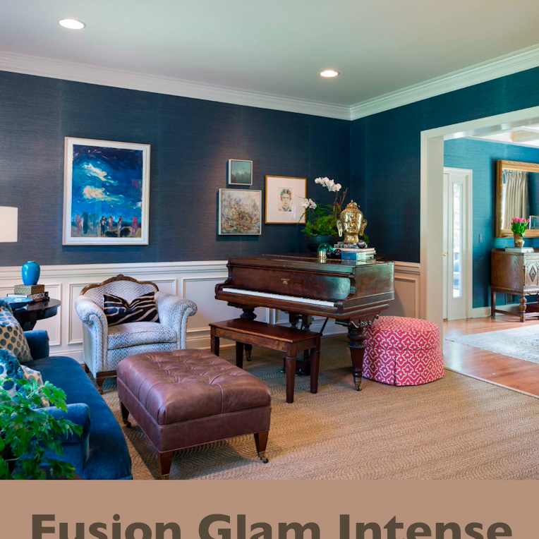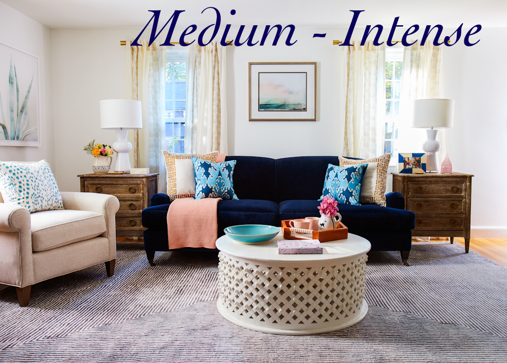 Intense is a commitment to being bold and taking it “there”. Jewel tones, mixed patterns. Ikat and satin. Can be applied to whole rooms, or designated special places.
